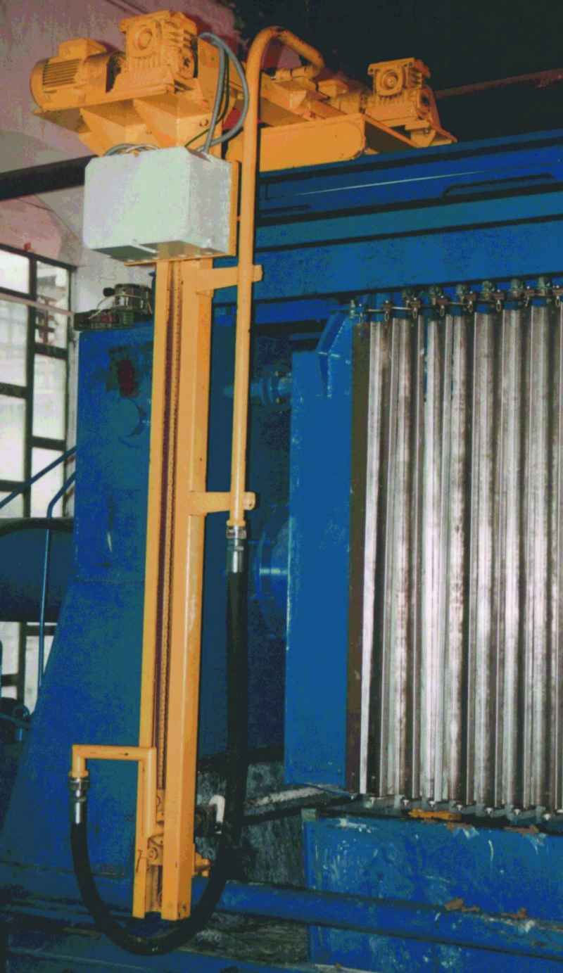 Фільтрувальні плити в цьому випадку мають з боків спеціальні кронштейни-ручки, які виконують відразу дві функції: з їх допомогою плити спираються на поздовжні стяжки, і вони ж служать робочими органами для механізму переміщення плит. На вимогу замовника фільтр-преси можуть поставлятися без зазначеного механізму. У цьому випадку переміщення плит при вивантаженні осаду здійснюється вручну.
